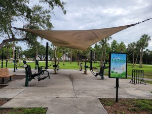 On the park’s eastern side lies the Kiwanis Fit Zone, featuring 11 hydraulic exercise units designed for every fitness level. Thanks to the Kiwanis Club of Dunedin and the Florida Department of Health–Pinellas County, these free-to-use stations target areas like biceps, triceps, chest, shoulders, back, and core. Some are wheelchair-adapted