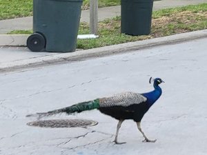 Peacocks have also been spotted along Michigan Avenue and CR 1 in Dunedin especially Spanish Manor and Barcelona, Brady Dr area.