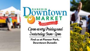 It’s Pam Lombard here — today I wanted to spotlight one of the consistent, lifestyle-enhancing events in our area: the Downtown Market in downtown Dunedin.
